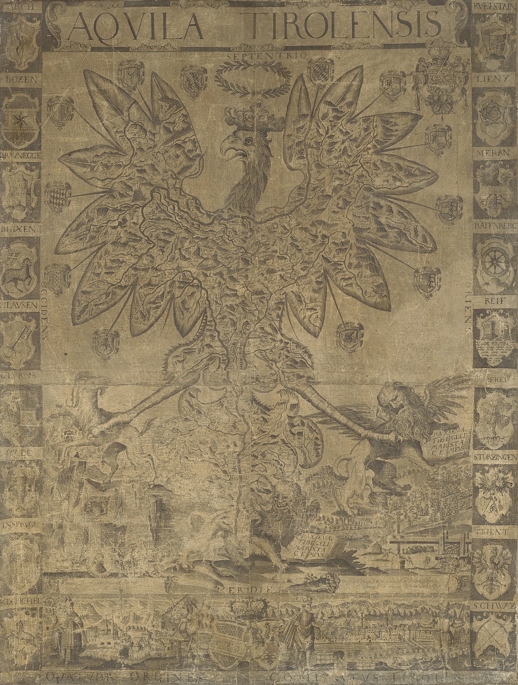 La mostra “Simbolo, potere, mobilità. Il Tirolo nelle mappe storiche”, curata da Petra Svatek dell’Accademia delle Scienze di Vienna, in oltre 80 tra carte geografiche e parti di esse, provenienti principalmente da archivi e biblioteche tirolesi, porta alla luce l’esempio del Tirolo quale collegamento tra cartografia, politica ed economia nel contesto dello sviluppo generale della cartografia dall’Antichità al XX secolo.