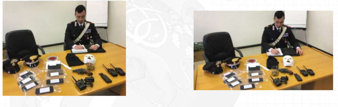 Arrivati sul posto, i militari dell’Arma hanno difatti ritrovato alcuni bossoli riconducibili a due pistole calibro 9, un passamontagna, una maschera, delle radiotrasmittenti e un jammer (apparecchio che devia le frequenze dei cellulari).