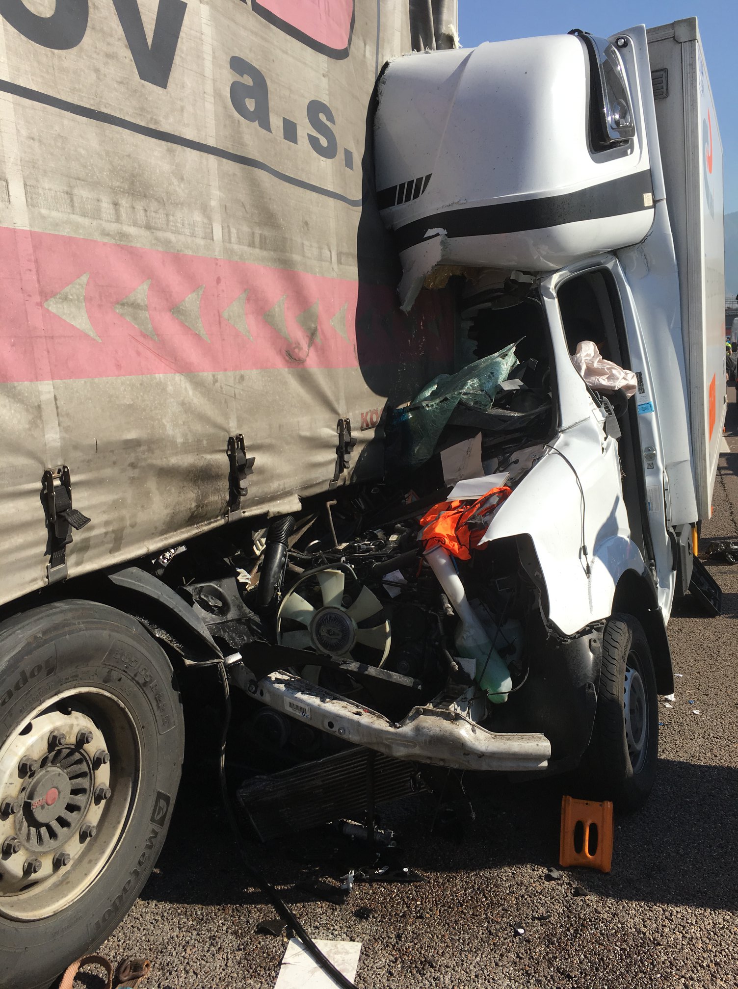 A causare il sinistro un violento tamponamento tra un furgone e un tir, con il mezzo più piccolo quasi “sparito” tanto era rimasto incastrato sotto l’autoarticolato.