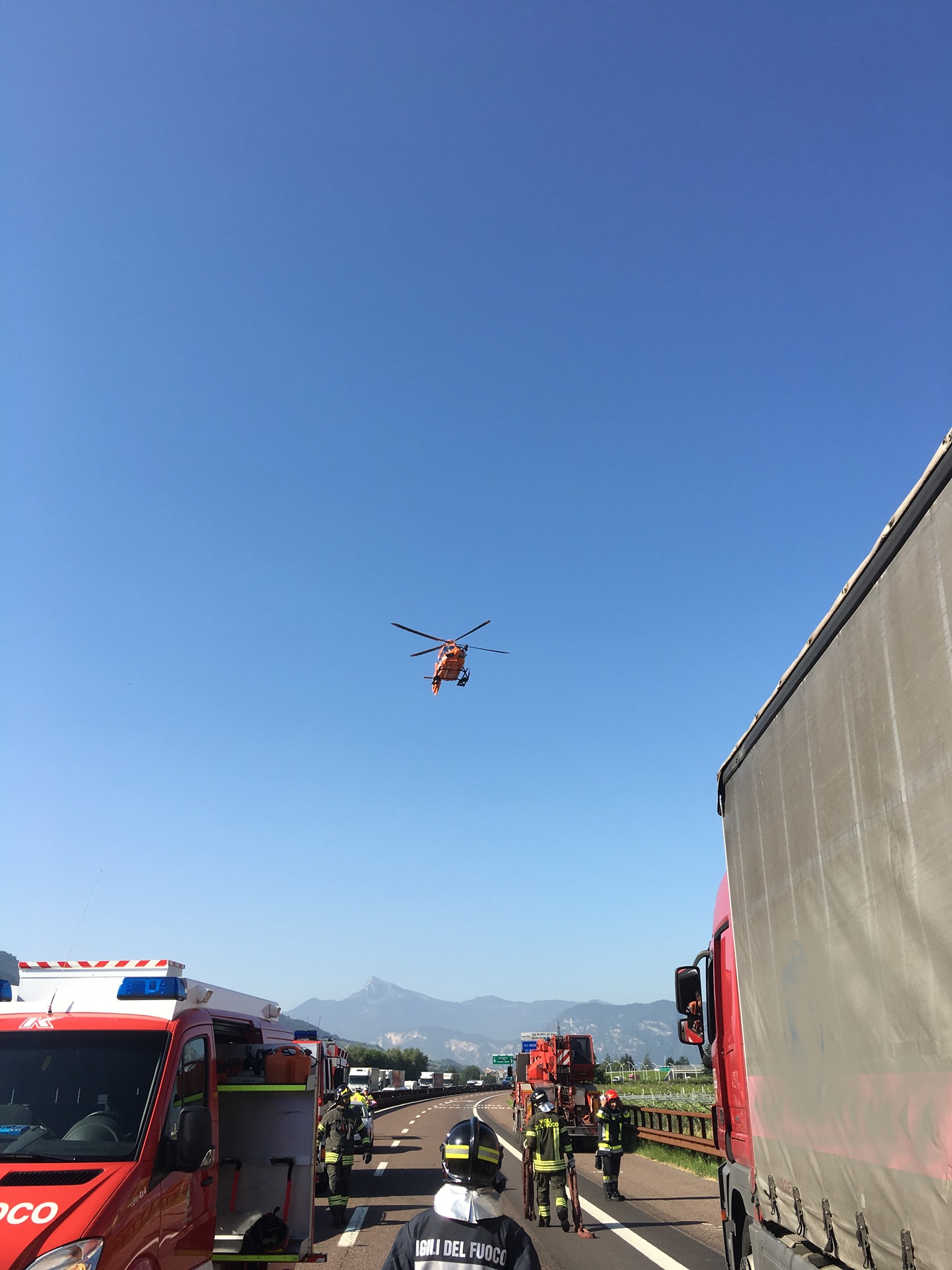 Grave incidente stradale questa mattina (13 giugno) verso le 8.30 sulla corsia sud dell’A22, poco prima dell’uscita San Michele.