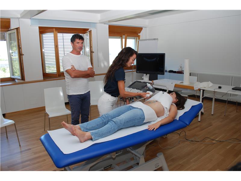 Oltre alla parte teorica, la Summer School dell’Azienda sanitaria dell’Alto Adige ha dato grande spazio anche agli aspetti più pratici. Questa volta, ad esempio, i ragazzi e le ragazze sono stati divisi in piccoli gruppi ed hanno avuto la possibilità di sperimentare l’esecuzione di esami clinici ed ecografici delle articolazioni, di un’ecografia addominale ed è stato spiegato loro come funziona un training di rianimazione.