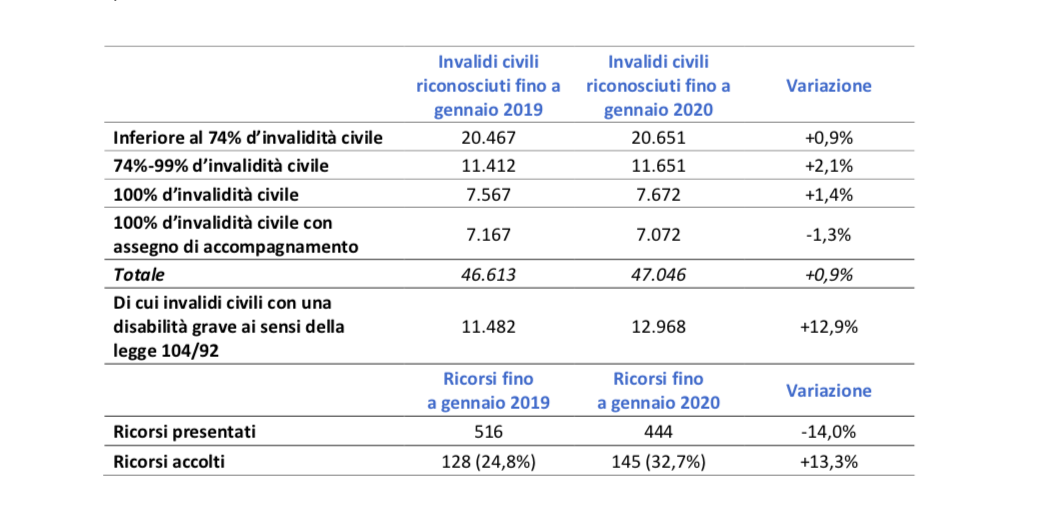 Come cambiamento più significativo, si è verificato il riconoscimento della legge 104/92: con un aumento di 1.486 persone (+12,9%) ci sono ora quasi 13.000 altoatesini che vivono con una disabilità grave. Agli invalidi civili, ai quali è stato riconosciuto dalla commissione medica un handicap grave, vengono concessi una serie di diritti aggiuntivi, come il permesso di lavoro retribuito (per la persona interessata o per un familiare) e varie agevolazioni fiscali.