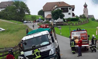 Sulla strada provinciale tra Maria Saal e Monte di Mezzo nel comune di Renon un camion carico di scarti di costruzione è uscito di strada affondando...