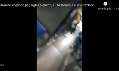 ‘Stranieri’ vogliono pagargli il biglietto, lui bestemmia e insulta:”Dovete andare a caga…” IL VIDEO