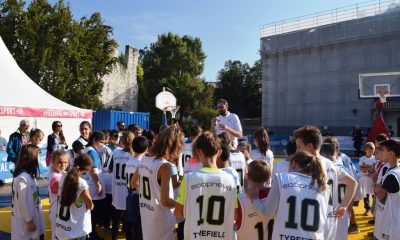 Giacomo Galanda, il capitano della Nazionale di basket italiana, oro europeo 1999 e argento olimpico 2004, ha incontrato i giovani e gli appassionati in piazza Fiera...