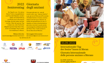 Il prossimo venerdì 30 settembre festeggeremo insieme la giornata delle persone anziane a Merano con un grande evento che si terrà presso il centro Vita di...