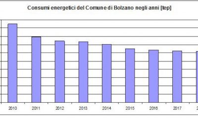 Nel corso del 2018 il Comune di Bolzano ha consumato 6.161 tep (tonnellate equivalenti di petrolio) contro le 6.219 del 2017, 6.369 tep del 2016, 6.502...