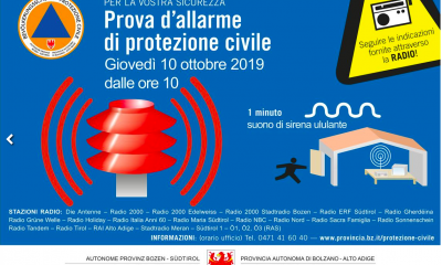 Giovedì 10 ottobre, a partire dalle 10, le 550 sirene presenti nei 9 distretti dei vigili del fuoco produrranno il particolare suono ululante dell’allarme della protezione civile che dura circa...