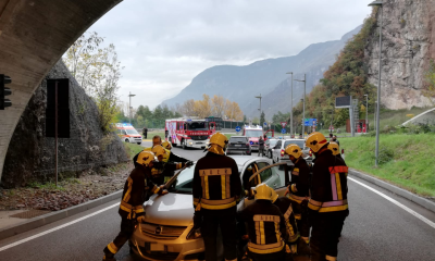 Incidente stradale tra una macchina e una moto con incendio all’ingresso della galleria di Ora. Le persone ferite sono state dapprima assistite dal personale di soccorso...