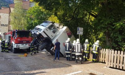 Curioso incidente ieri (13 luglio) a Siusi allo Sciliar dove un camion è finito in bilico a bordo strada rimanendo bloccato in pendenza. Il freno a...