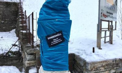 Un salsiccione avvolto dai sacchi di nylon e la scritta “Rifiuto speciale. Via il confine ingiusto nell’Europa unita“. Sotto l’indegno agglomerato di plastiche si trova in realtà...