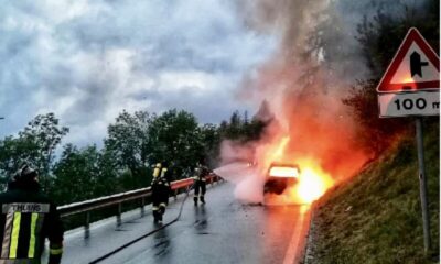 Veicolo completamente avvolto fiamme vicino a Tunes, determinante l’intervento dei vigili del fuoco