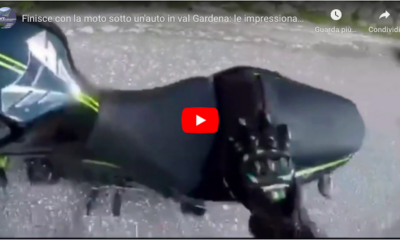 Finisce con la moto sotto un’auto in val Gardena: le impressionanti immagini in diretta