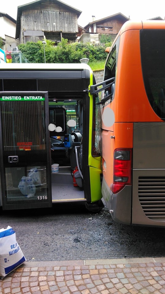Incidente urbano questa mattina intorno alle 11.20 a San Leonardo in Passiria, dove un autobus di linea ne ha tamponato un altro fermo in sosta alla stazione.