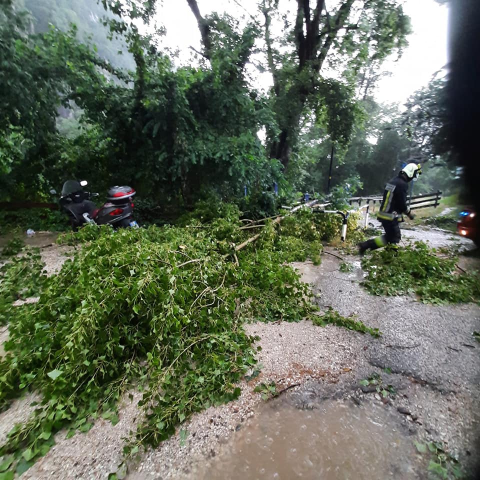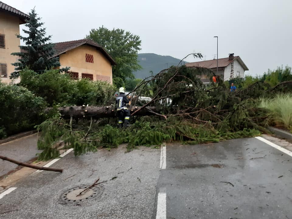Tra le operazioni, i pompieri volontari sono intervenuti per la caduta di alberi tra Vallarsa, San Giacomo in via Max Valier (vedi foto) e Pineta, per la messa in sicurezza e pulizia delle strade.
