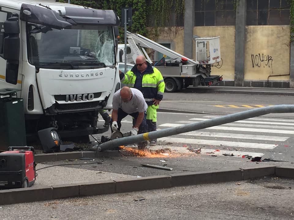 Pericoloso incidente oggi (8 aprile) intorno alle 12.30 in via Galvani, all’altezza del Centrum, dove per motivi ancora da accertare, il conducente di un autocarro ha perso il controllo del suo mezzo.
