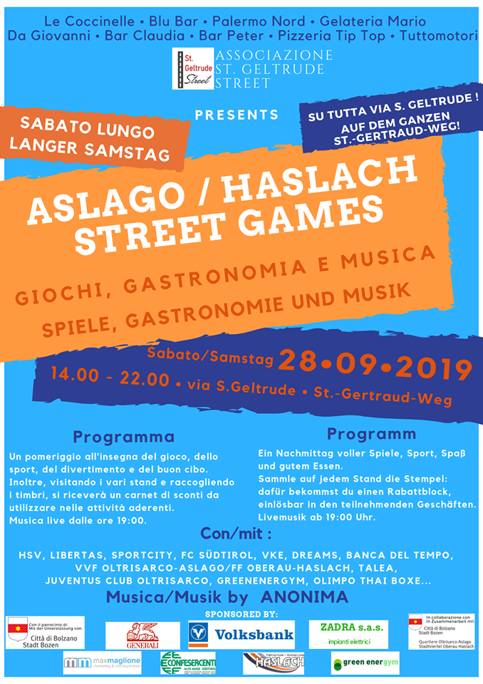 Tutto pronto per “Aslago/Haslach Games”: sabato 28 prima grande festa di St. Geltrude Street