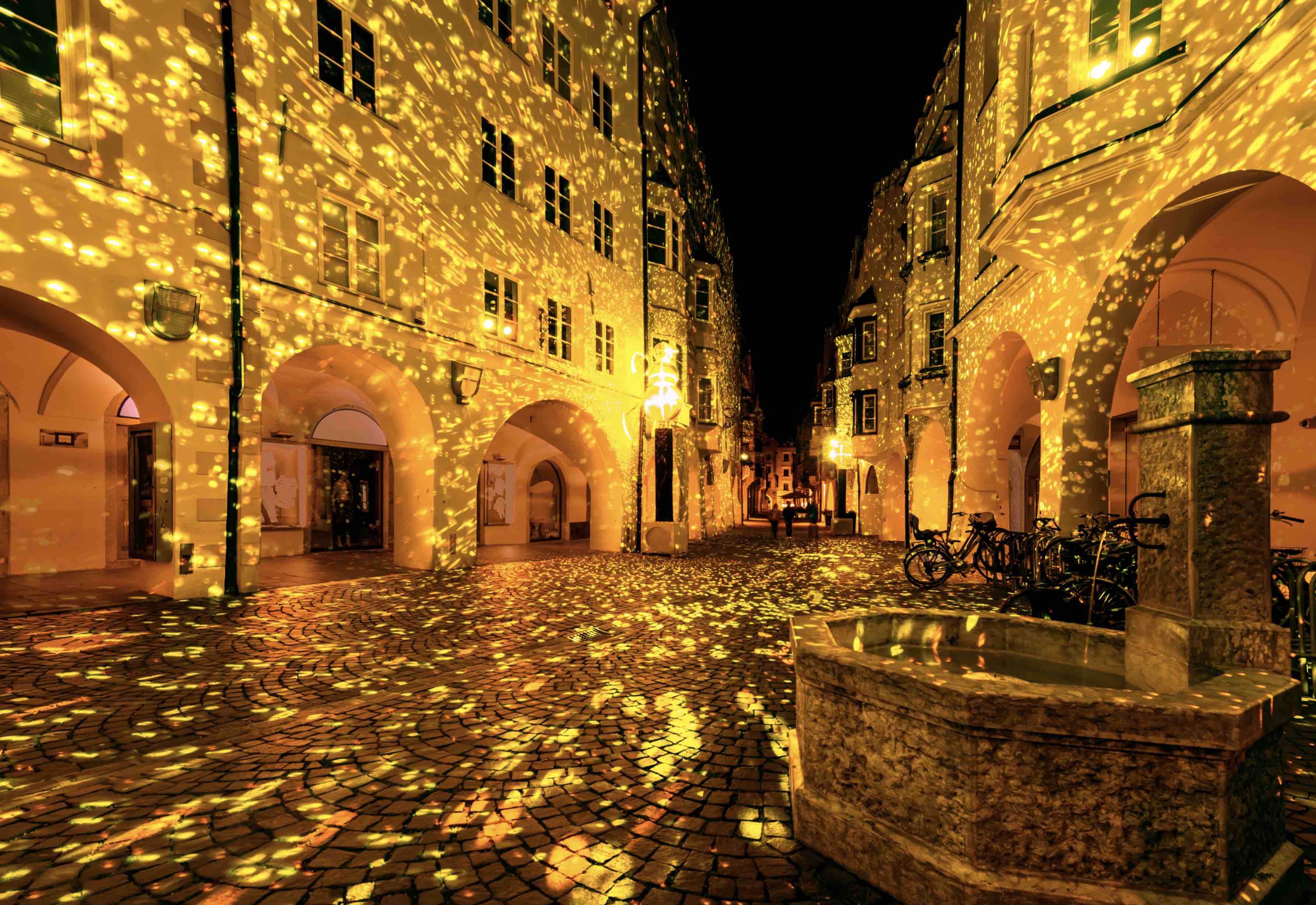 Ci sono 26 motivi per uscire dopo il tramonto e sperimentare le numerose opere d’arte dai colori vivaci nelle strade e presso le fonti d’acqua della capitale della valle Isarco, e su piazze e facciate.