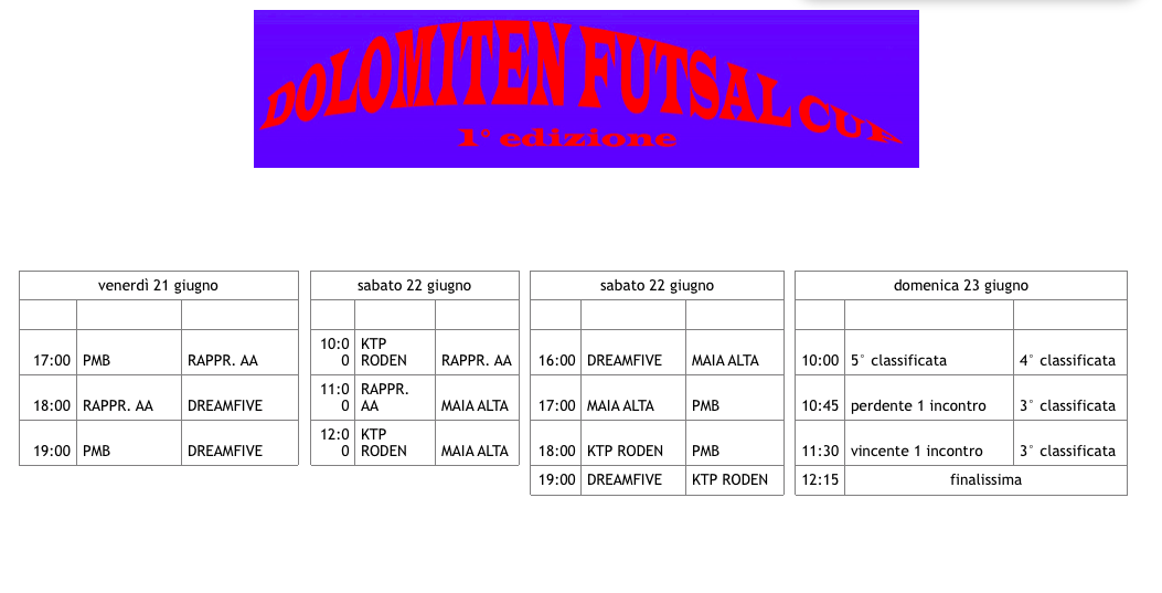 Tutte le informazioni potranno essere richieste via email a: [email protected] o sulla pagina facebook Dolomiten Cup futsal.