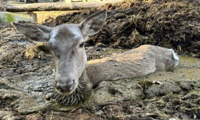 L’animale é affondato parzialmente nel pozzo di liquame e non riusciva più a liberarsi dalla situazione precaria.