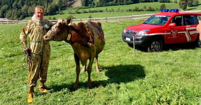 Una mucca cade in una concimaia a Meltina, salvata dai Vigili del Fuoco