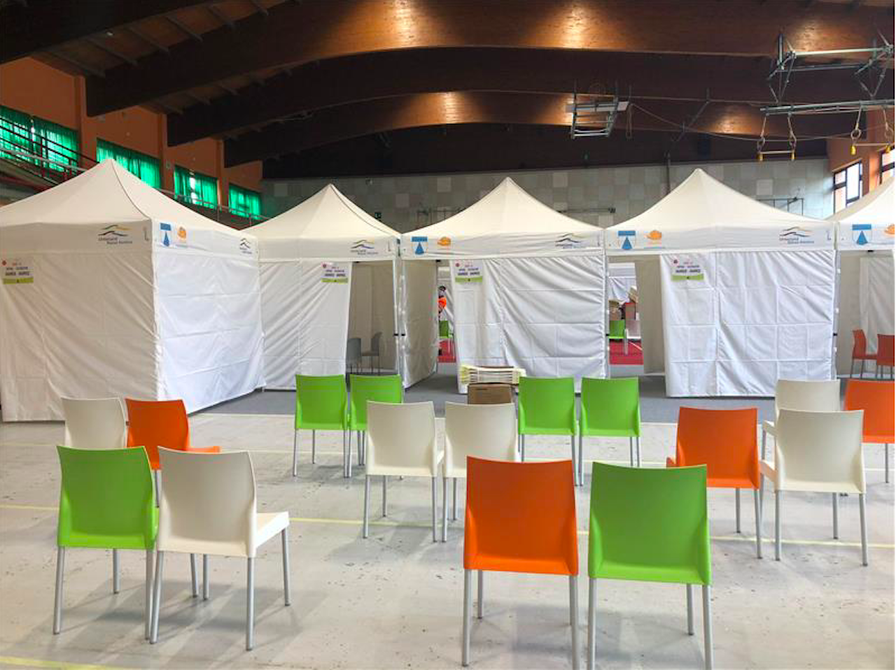 Sono in pieno svolgimento il lavori di allestimento, nella palestra di Egna, del Vax-Day di venerdì 5 e sabato 6 marzo, organizzato dal Comprensorio sanitario di Bolzano in collaborazione con il Comune di Egna, per gli ultraottantenni della Bassa Atesina.