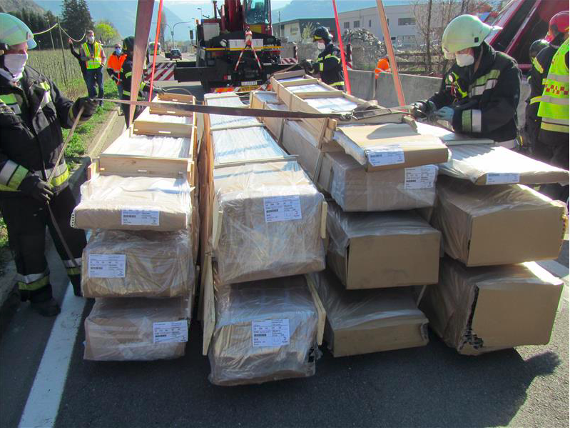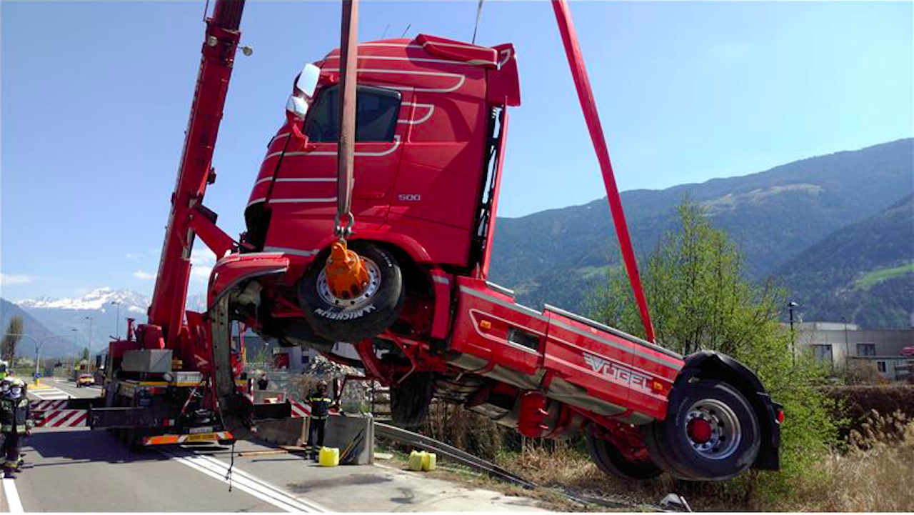 L’autista del mezzo pesante è rimasto illeso. Sul posto sono intervenuti in un primo momento i Vigili del Fuoco Volontari di Naturno che, vista la situazione, chiedevano supporto alla squadra autogrù del Corpo Permanente di Bolzano.