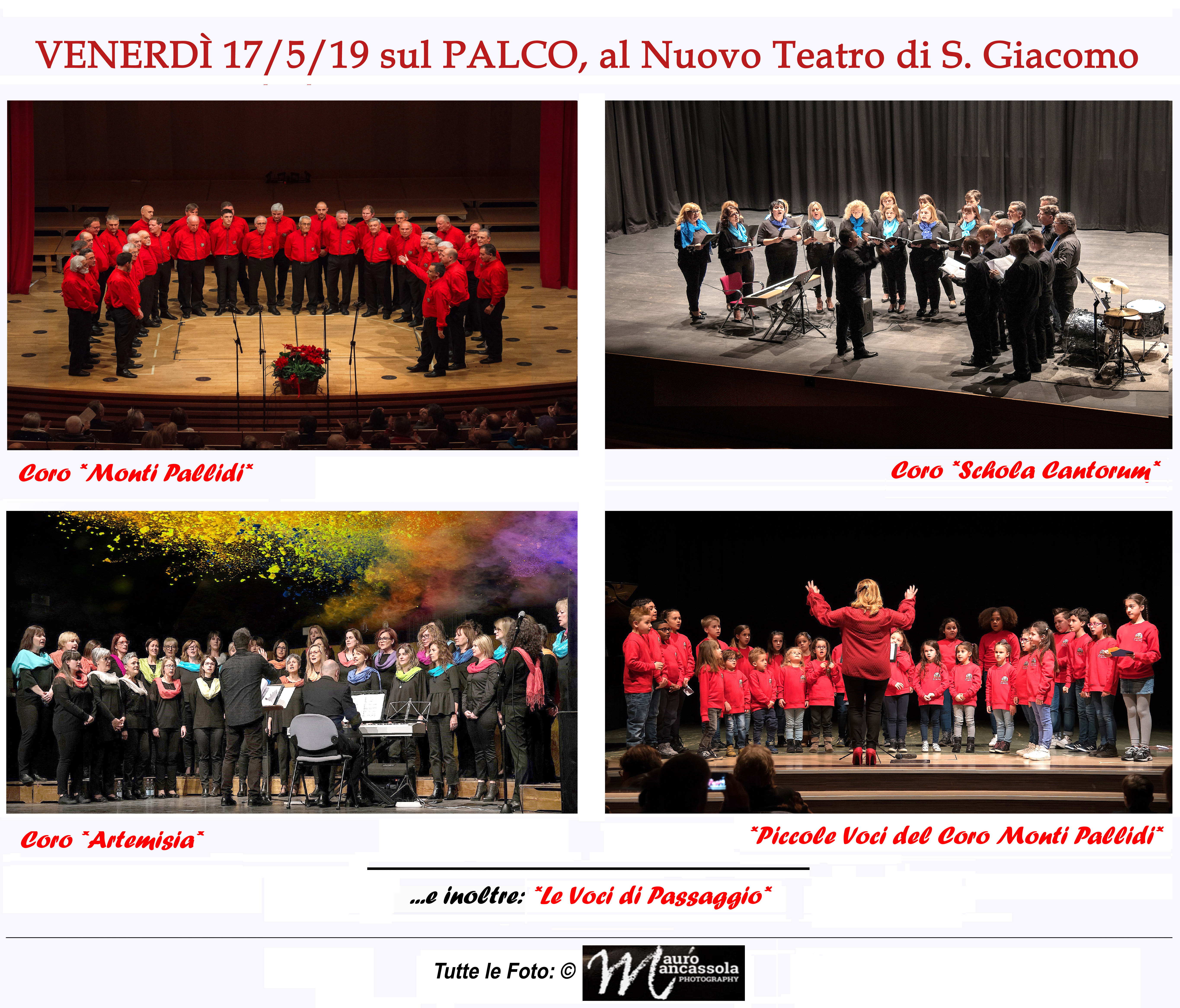 Sul palco si susseguiranno lo storico Coro ‘Monti Pallidi’, il coro misto ‘Schola Cantorum’ e il coro femminile ‘Artemisia’ diretti dal m° Paolo Maccagnan, le ‘Piccole Voci del Coro Monti Pallidi’ e il gruppo vocale ‘Le Voci di Passaggio’ diretti dalla maestra Lorenza Maccagnan.