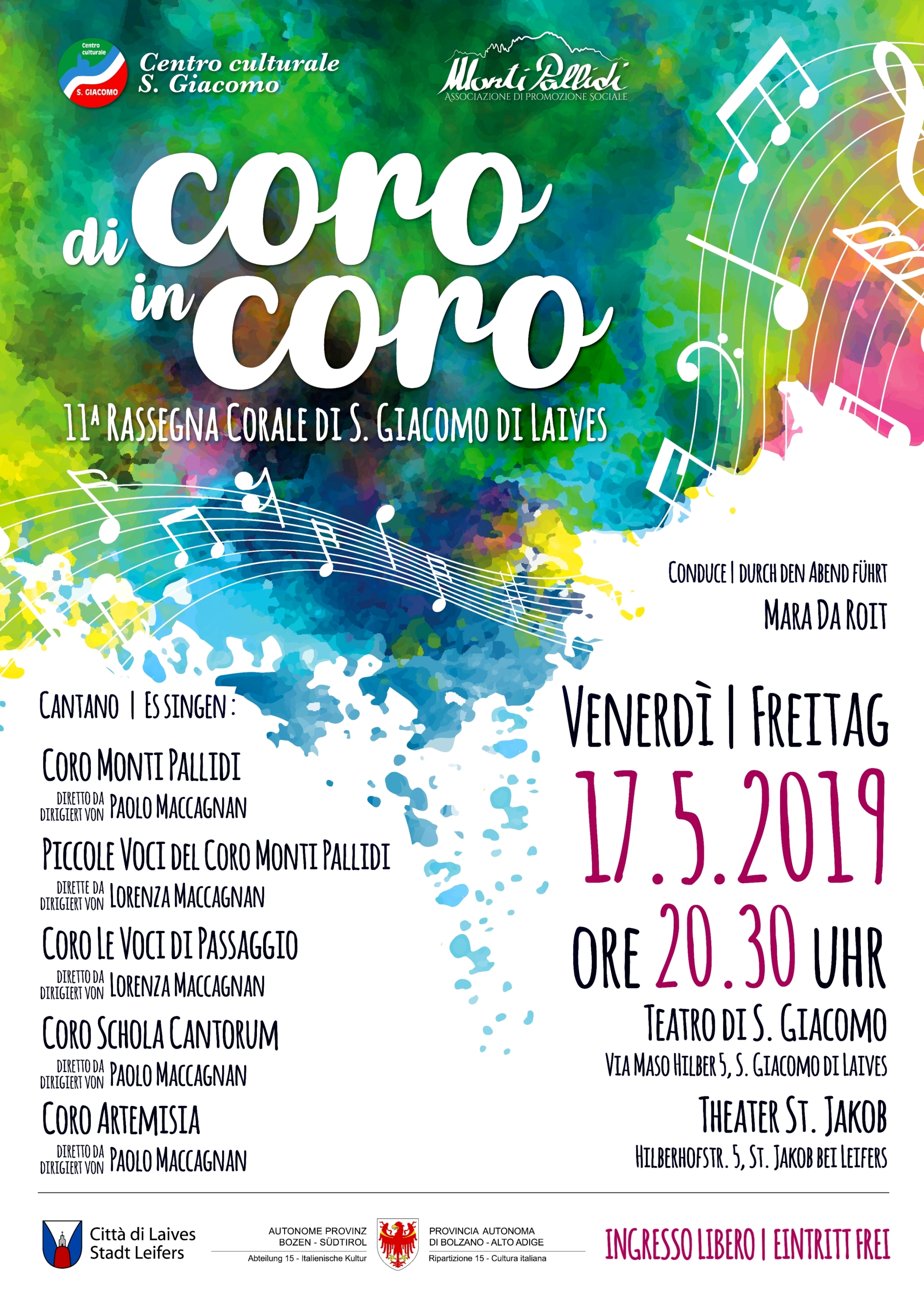 Giunta alla sua undicesima edizione, la Rassegna corale di S. Giacomo tributerà infatti un omaggio all’intero movimento corale racchiuso nell’Associazione Monti Pallidi, lustro della terra altoatesina ben oltre i confini locali con il suo glorioso coro di punta che porta lo stesso nome, ma che grazie a tutti i suoi ensemble tiene alto il vessillo della coralità.
