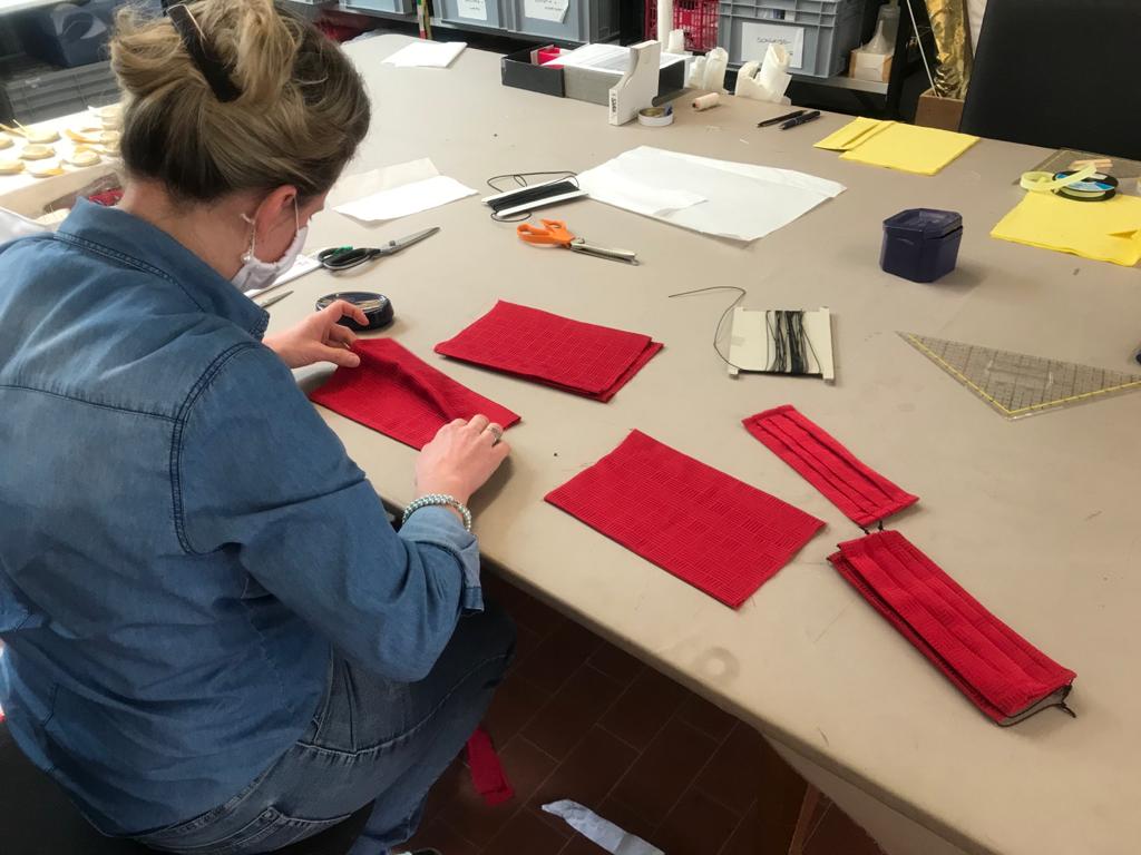 Anche se le porte del teatro rimangono chiuse la sera e il sipario non si apre, dietro le quinte si lavora. Lì, dove di solito si disegnano costumi e si creano pezzi unici, attualmente vengono cucite le mascherine protettive in stoffa per i bolzanini.