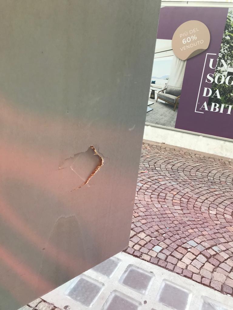 Danneggiati anche elementi nei pressi dell’ingresso degli esercizi. Nonostante ora lo spazio per i pedoni sia ridotto al minimo, a causa del cantiere che si estende fino al marciapiede, il ‘raid notturno‘ non ha risparmiato, nemmeno questa volta, un tranquillo angolo cittadino dove gli esercenti non chiedono altro che lavorare in serenità.