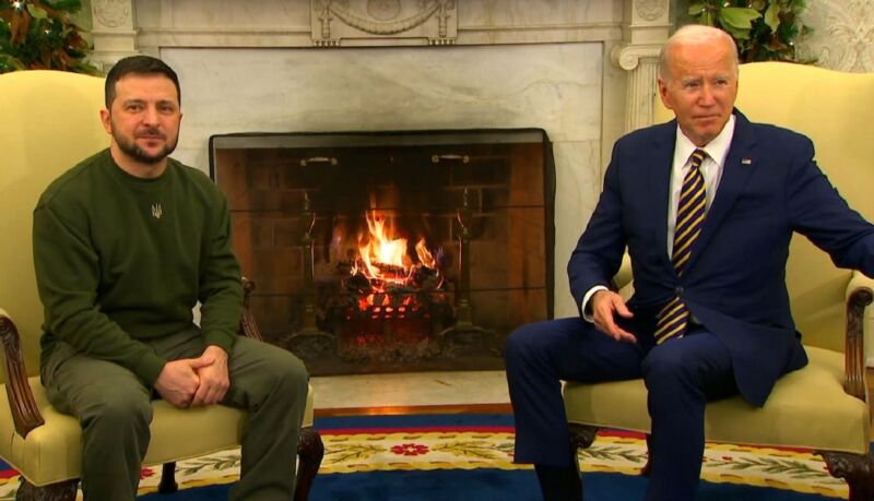 I due leader si era incontrati l’ultima volta nello Studio Ovale nel settembre del 2021, quando l’invasione della Russia era solo una minaccia. Questa volta però è diverso e ricevendolo alla Casa Bianca Biden afferma: “Gli Stati Uniti vogliono una pace giusta. Putin non vuole mettere e fine a questa guerra crudele saremo sempre al vostro fianco”.